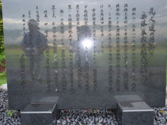 石碑の脇には、黒御影石に碑文が